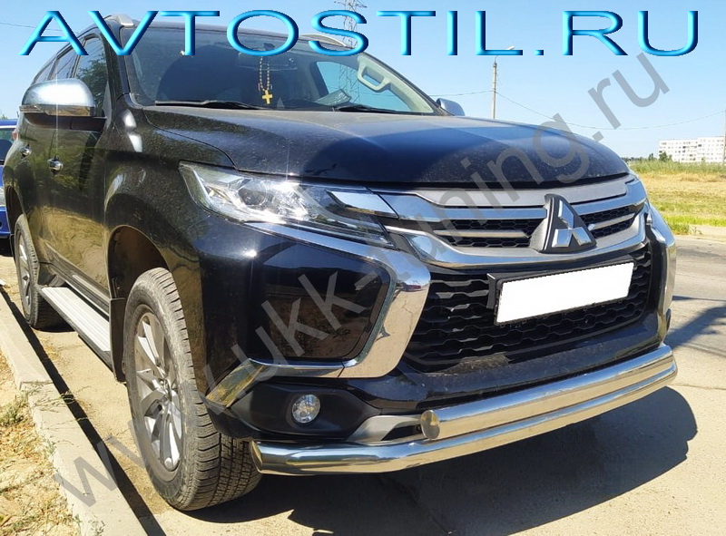 Mitsubishi / Pajero Sport (2016 г.) / Pajero Sport Передняя защита труба двойная 76/60 мм нержавейка с двумя подгибами