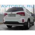 Задняя защита на Киа Соренто 2013 как и передняя защита бампера проектируется и изготавливается для внедорожника с учетом конструктивных особенностей. Вместе с задней защитой на Kia Sorento 2013 можно установить так же и фаркоп для буксировки прицепа.