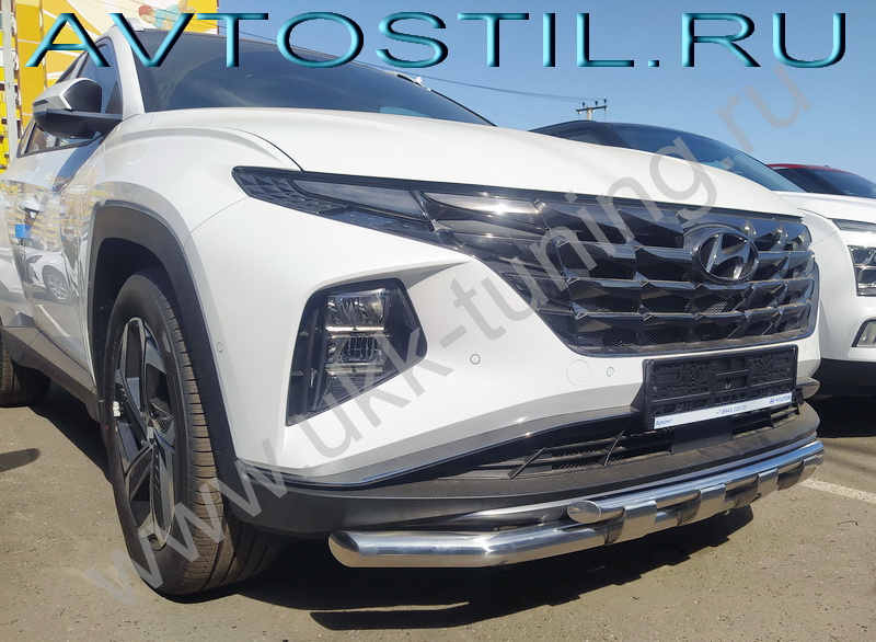 Hyundai / Tucson (2021 г.) / Tucson Защита переднего бампера труба двойная с перемычками 60/42 мм нержавейка