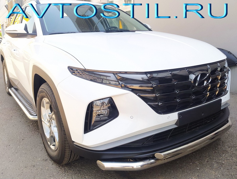 Hyundai / Tucson 4 (2021-2026 г.) / Tucson Защита переднего бампера труба двойная 60/42 мм нержавейка