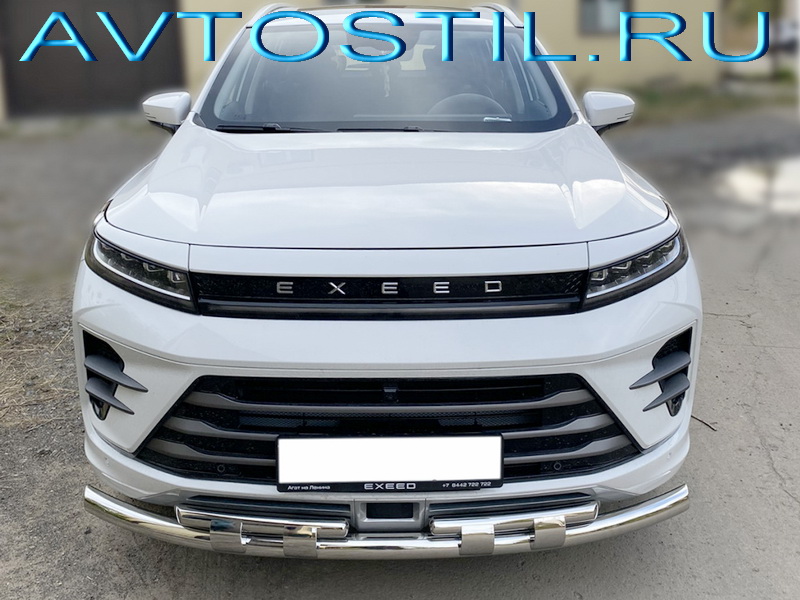 Exeed / LX (2019-2025 г.) / LX Защита переднего бампера труба двойная с перемычками 60/42 мм с камерой