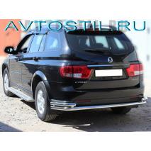 Ssang Yong Kyron защита заднего бампера труба с углами d60/53мм. Задняя защита на Кайрон устанавливается на лонжероны внедорожника в штатные места крепления, предусмотренные заводом производителем. Для установки защиты бампера Кайрон необходимо обратиться в сервисный центр или воспользоваться гаечными ключами и установить самостоятельно. Весь необходимый комплект креплений (крепления, гайки, болты, шайбы) и инструкция идут в комплекте с изделием. Ssang Yong Kyron задняя защита изготовлена из нержавеющей стали, которая не требует ежедневного ухода за ней. Крепления произведены из обычной черной" стали толщиной 8мм.